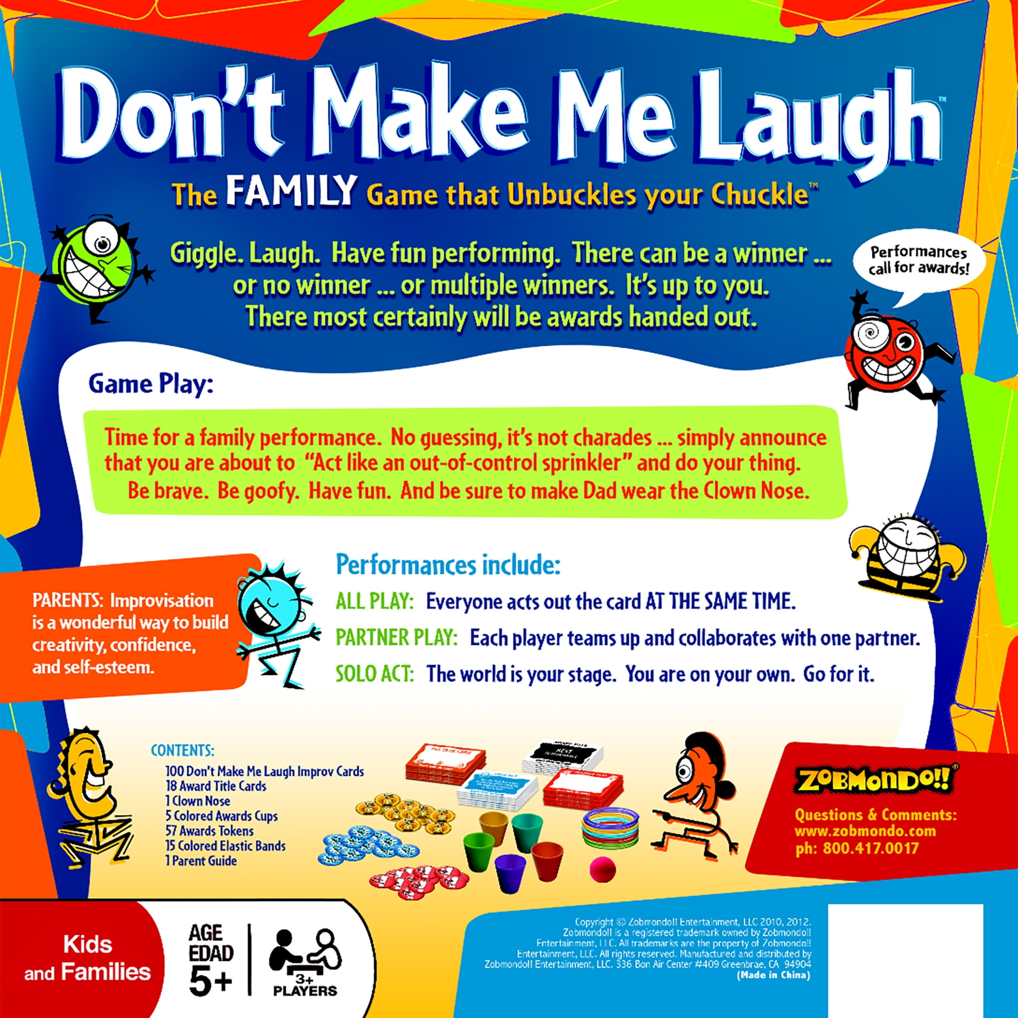 Don T Make Me Laugh By Zobmondo Silly Charades Party Game Hilarious Fun For Families And Kids Award Winning Kids Game Walmart Com
